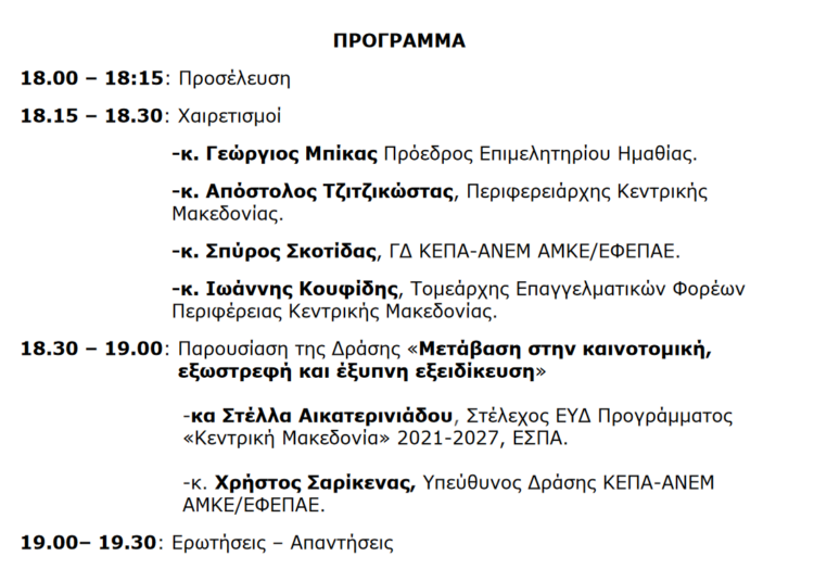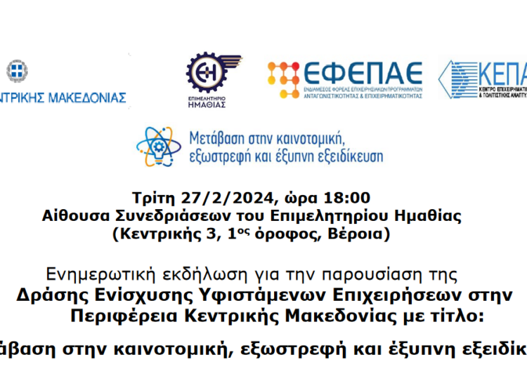 Την πρώτη δράση ενίσχυσης της επιχειρηματικότητας από το νέο ΕΣΠΑ της Περιφέρειας Κεντρικής Μακεδονίας παρουσίασε στο Επιμελητήριο Σερρών ο Περιφερειάρχης Απόστολος Τζιτζικώστας