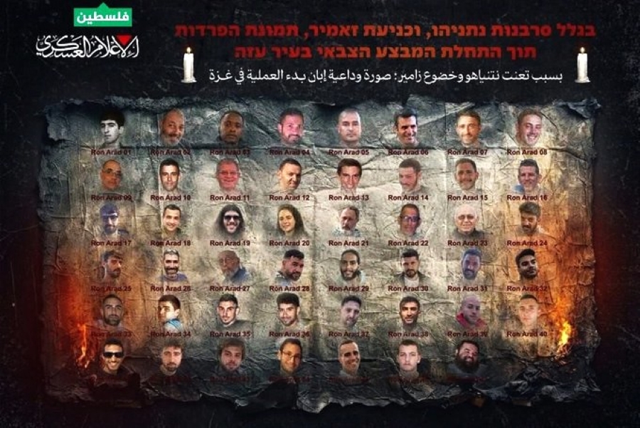 Η Χαμάς κλιμακώνει τον ψυχολογικό πόλεμο με το Ισραήλ, δημοσιεύοντας αφίσα με φωτογραφίες των 48 εναπομεινάντων ομήρων που κρατούνται στη Γάζα και συνοδεύοντάς την με τη φράση: «Αποχαιρετήστε τους». Στο μήνυμα, όλοι οι όμηροι αναφέρονται ως «Ρον Αράντ», παραπέμποντας στον Ισραηλινό πιλότο που αγνοείται από το 1988 και το όνομα του οποίου αποτελεί για το Ισραήλ συνώνυμο της τραγικής απώλειας.