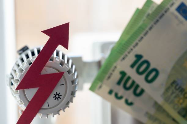 A closeup shot of the Euro currency and the electricity bill going up