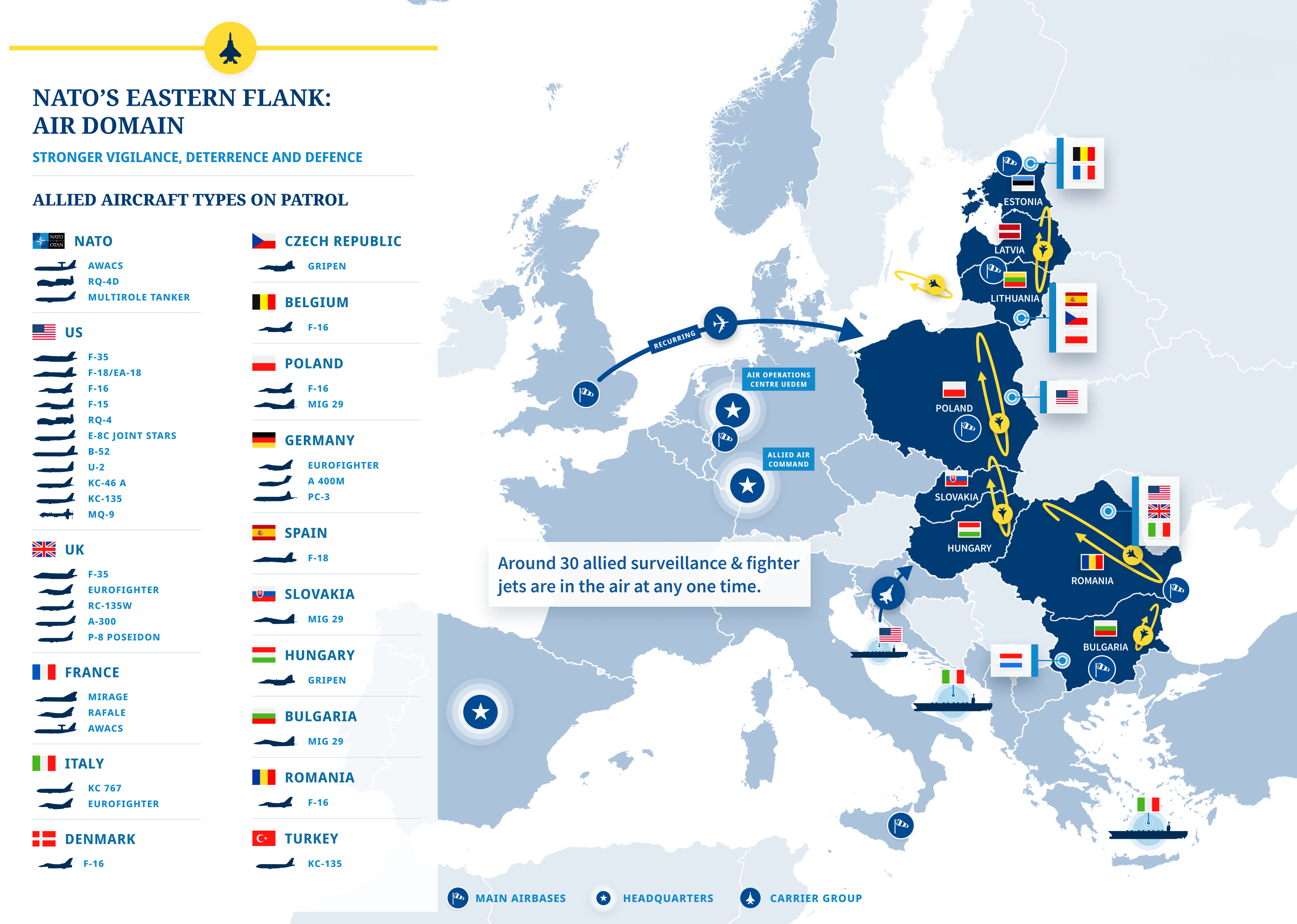 Το ΝΑΤΟ δικαιολογεί την ενίσχυση της παρουσίας του ως «απαντητική επαγρύπνηση» με μέσα που θα ενισχύσουν την αποτροπή, την ίδια στιγμή που η συμμαχία διατηρεί ανοικτό το ενδεχόμενο να μη δημοσιοποιήσει ποιοι σύμμαχοι συνεισφέρουν στα νέα μέσα.