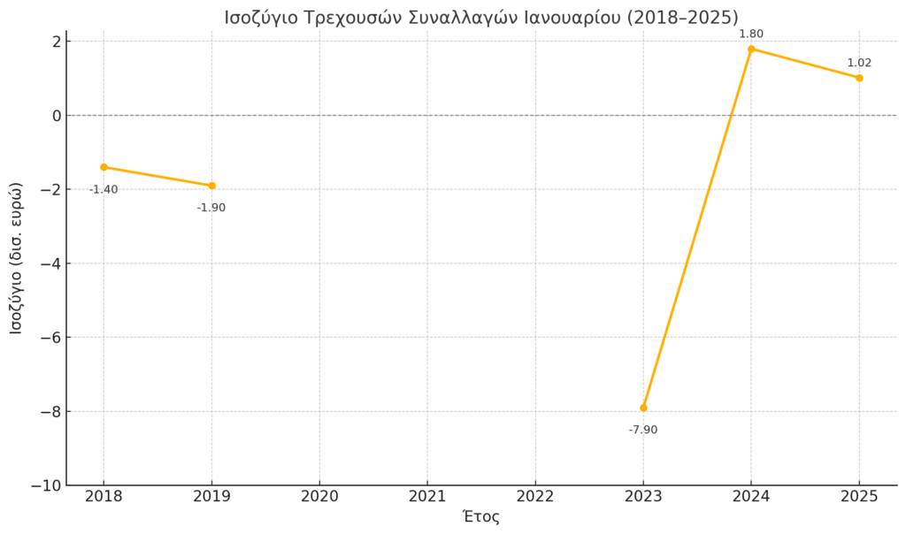 Το αρνητικό ξεκίνημα στο Ισοζύγιο Τρεχουσών Συναλλαγών έρχεται ως προειδοποιητικό σήμα για την πορεία της ελληνικής οικονομίας το 2025, ειδικά υπό το βάρος των διεθνών πληθωριστικών πιέσεων και της αβεβαιότητας στις αγορές. Η δυναμική των εισαγωγών έναντι των εξαγωγών, η στασιμότητα στις υπηρεσίες και το «κόκκινο» στο εμπορικό ισοζύγιο αποτελούν παράγοντες που εντείνουν τη διαρθρωτική αδυναμία της εξωτερικής θέσης της χώρας.
