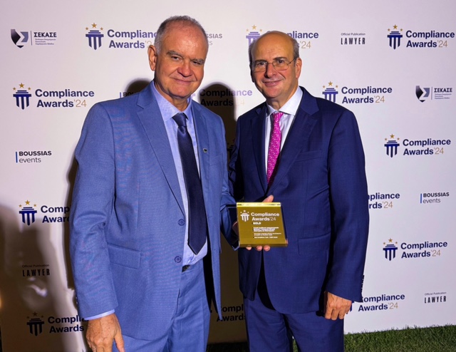 Υπουργείο Εθνικής Οικονομίας και Οικονομικών: Η Γενική Διεύθυνση Δημοσιονομικών Ελέγχων (ΓΔΔΕ) του Υπουργείου Εθνικής Οικονομίας και Οικονομικών απέσπασε το Χρυσό Βραβείο στην κατηγορία «Compliance Team of the Year – Public Sector» στα Compliance Awards 2024. Το βραβείο αυτό αποτελεί αναγνώριση του σημαντικού έργου της Γενικής Διεύθυνσης Δημοσιονομικών Ελέγχων στον τομέα της κανονιστικής συμμόρφωσης και της συμβολής της στην ενίσχυση της διαφάνειας και της χρηστής δημοσιονομικής διαχείρισης.