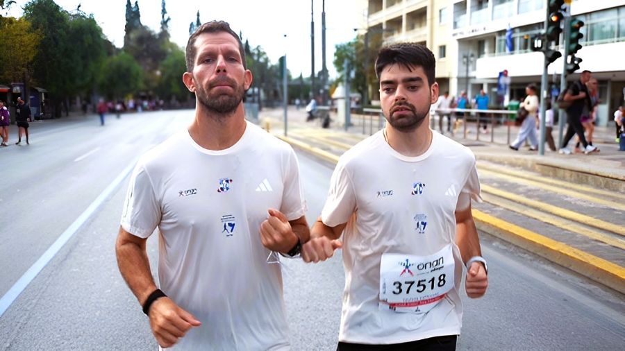 Ο Μάριος Σαρέλλας, δρομέας με προβλήματα όρασης, συγκίνησε στον Αυθεντικό Μαραθώνιο της Αθήνας, στέλνοντας μήνυμα ζωής