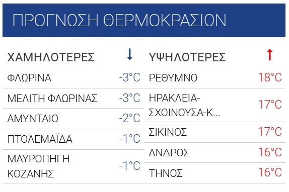 - στη Δυτική Μακεδονία από -3 έως 10 βαθμούς,