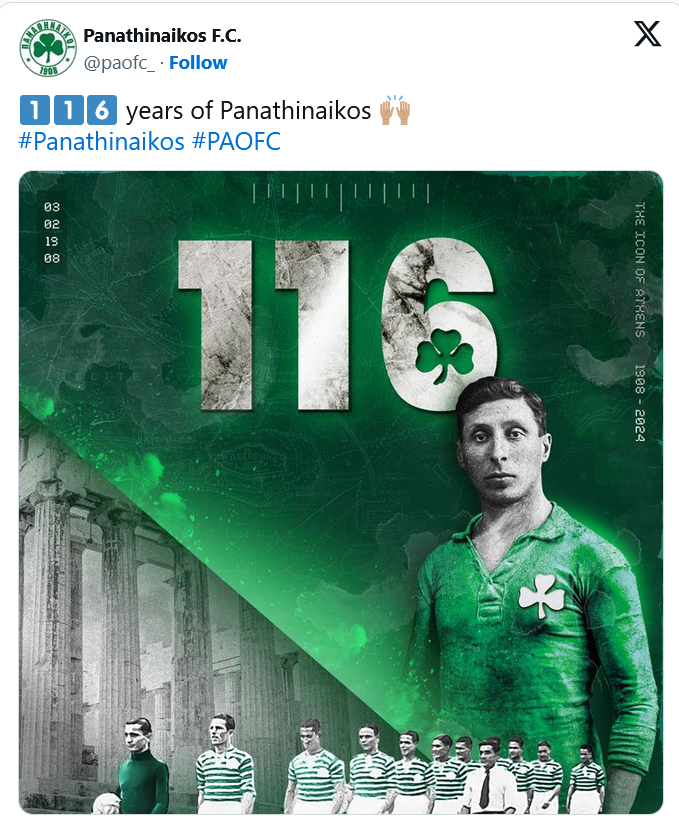 Χρόνια πολλά στον Σύλλογο Μεγάλο! Χρόνια πολλά στην αιώνια αγάπη μας! Χρόνια πολλά στον Παναθηναϊκό μας.»