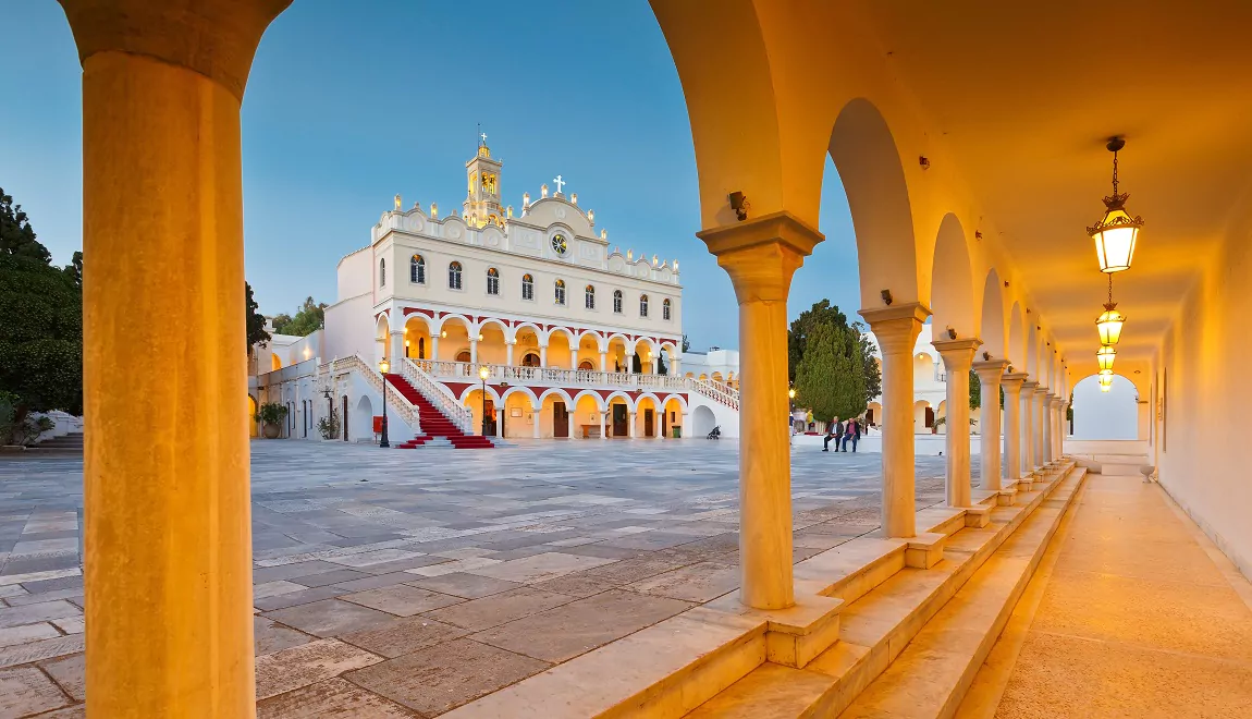 Ο Ιερός ναός της Παναγίας της Τήνου, στέκει από πάνω απ´ τη Χώρα προστάτης του νησιού και των προσκυνητών της. Επισκέψου τον για να νιώσεις την κατάνυξη να σε κατακλύζει κι ύστερα άσε τα βήματα σου να σε βοηθήσουν να ανακαλύψεις την άλλη πλευρά του νησιού.