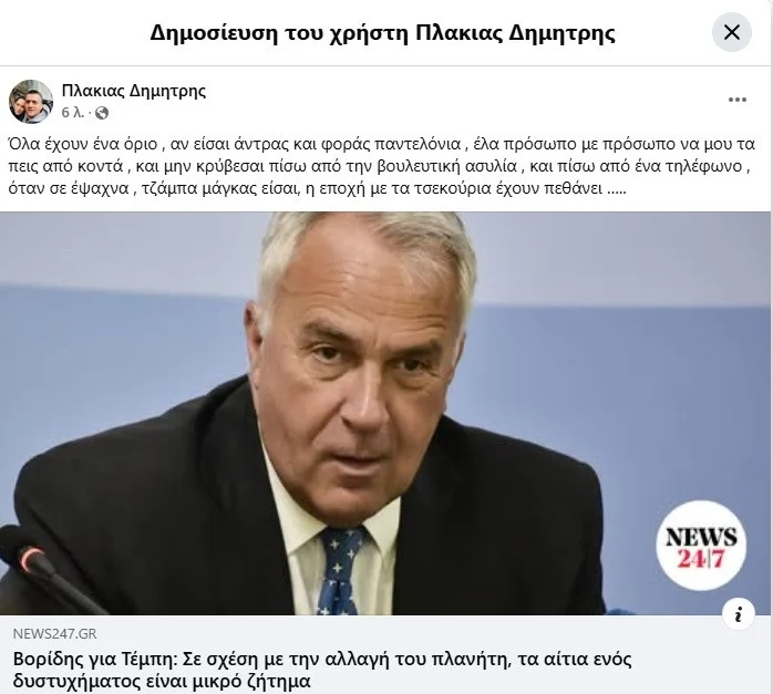 H ανάρτηση του Δημήτρη Πλακιά:
