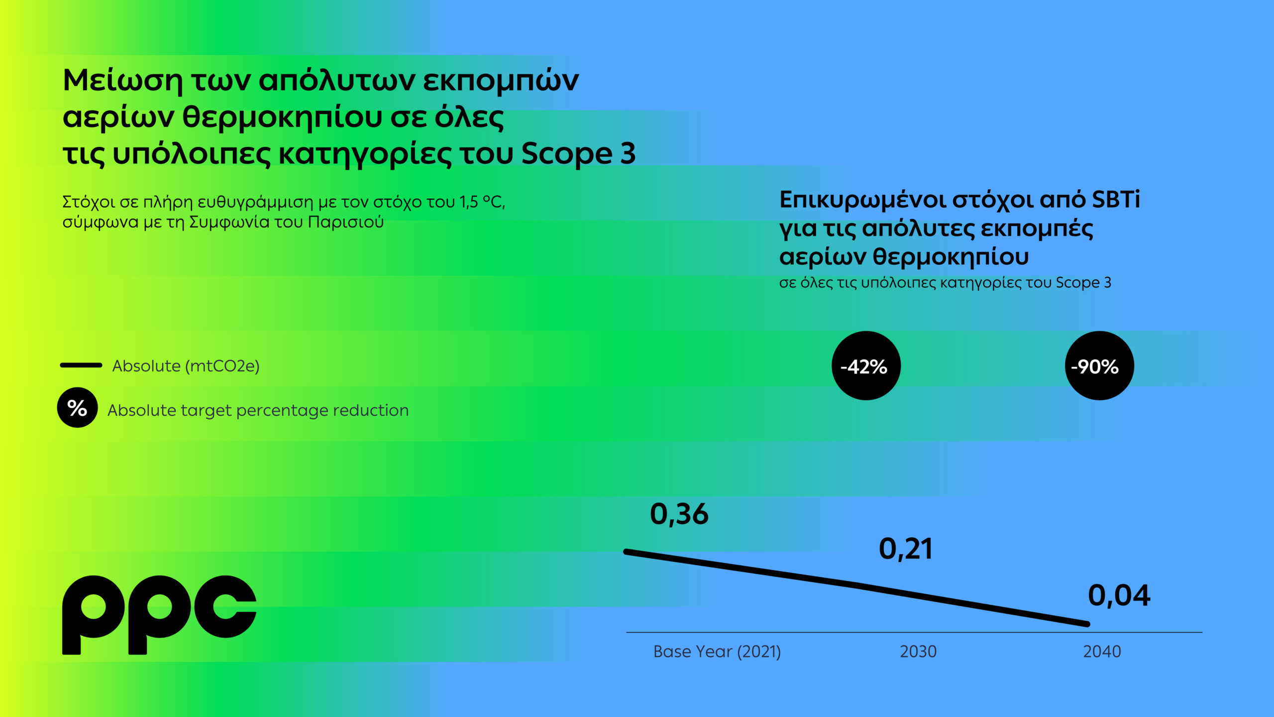 μείωση 90% των απόλυτων εκπομπών αερίων θερμοκηπίου σε όλες τις υπόλοιπες κατηγορίες του Scope 3.