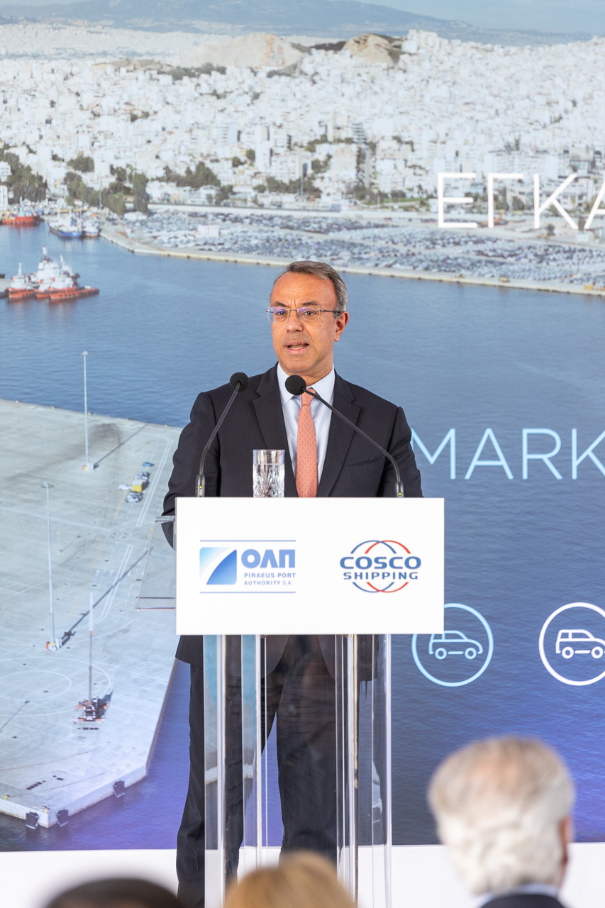H επέκταση του τερματικού σταθμού αυτοκινήτων του ΟΛΠ συμβάλλει στην περαιτέρω βελτίωση της ανταγωνιστικότητας και της ελκυστικότητας του λιμένα ως κόμβου μεταφόρτωσης οχημάτων στη Μεσόγειο, τόνισε ο Υπουργός Υποδομών και Μεταφορών, Χρήστος Σταϊκούρας κατά την τελετή παράδοσης του έργου.