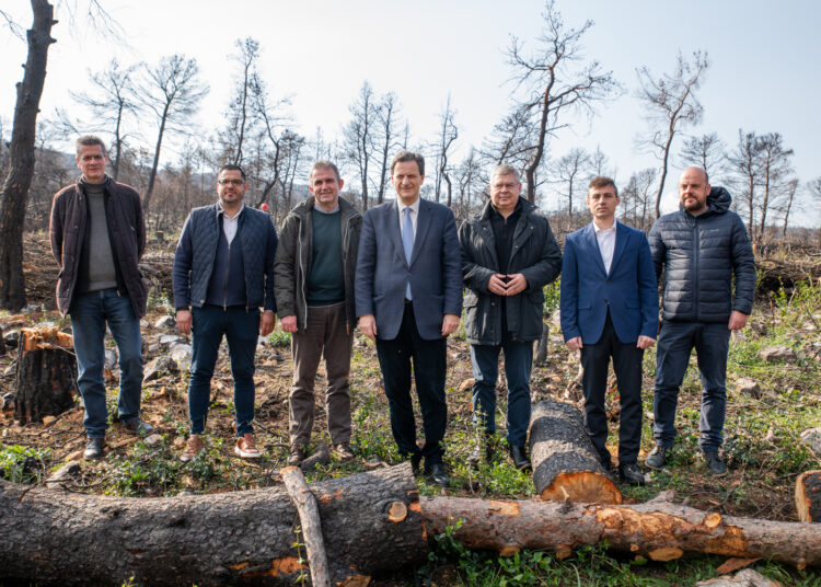 Ο Υπουργός Περιβάλλοντος και Ενέργειας κ. Θόδωρος Σκυλακάκης, επεσήμανε: «Σήμερα είχαμε την ευκαιρία να διαπιστώσουμε από κοντά την ολοκλήρωση ενός σπουδαίου έργου, το οποίο υλοποιήθηκε με την βοήθεια του ανάδοχου αποκατάστασης που είναι η HELLENiQ ENERGY. Πρόκειται για κορμοδέματα και κλαδοπλέγματα που συγκρατούν το χώμα και εξασφαλίζουν τη φυσική αναγέννηση του δάσους που έχει ήδη ξεκινήσει. Όπως μπορεί εύκολα να διαπιστώσει κανείς, υπάρχουν μικρά πευκάκια που μόλις τώρα ξεφυτρώνουν, υπάρχουν πουρνάρια, αλλά και μια φυσική αναγέννηση που πρέπει να προστατεύσουμε για πολλά χρόνια ώστε να ξανακερδίσουμε αυτό το δάσος. Όλα αυτά, συνιστούν την προσπάθεια που κάνουμε να συγκρατήσουμε το χώμα και να βοηθήσουμε την καινούργια ζωή να ξεκινήσει».