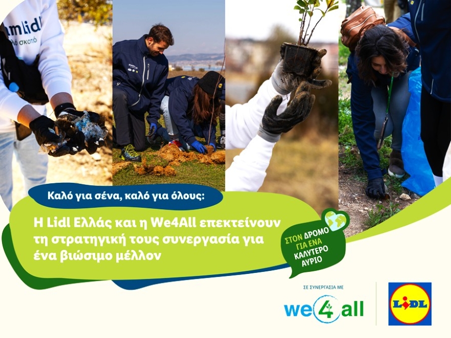 Η Lidl Ελλάς επεκτείνει τη συνεργασία της με τον μη κερδοσκοπικό οργανισμό We4All, ανανεώνοντας για δεύτερη συνεχή χρονιά τη χορηγία της. Στόχος της συνεργασίας είναι η αναδάσωση, η περιβαλλοντική εκπαίδευση και η βιώσιμη ανάπτυξη, ενισχύοντας τις πρωτοβουλίες προστασίας του φυσικού περιβάλλοντος.