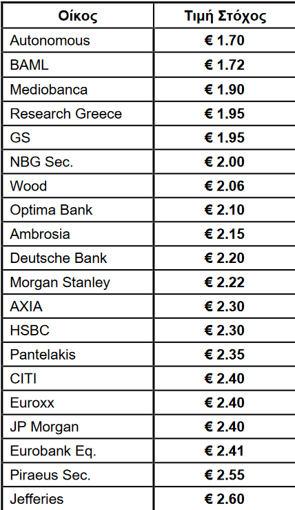 Διοίκησης σε €2,60 από €2,55.