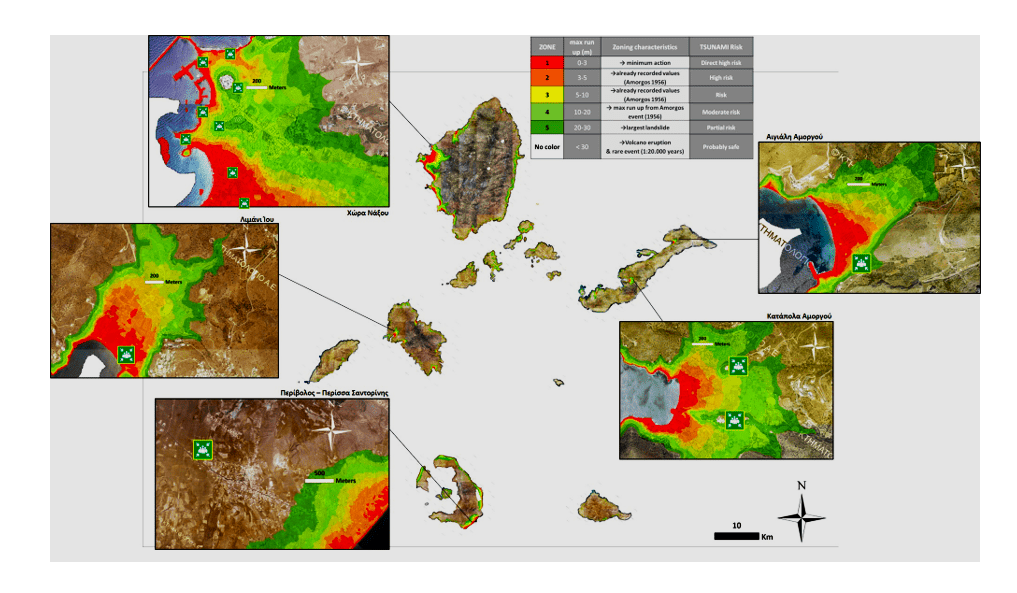 - Στη Νάξο, πολλά από τα σημεία συγκέντρωσης βρίσκονται εντός της επικίνδυνης ζώνης, ενώ η πυκνή δόμηση στη Χώρα της Νάξου καθιστά επιτακτική την επικαιροποίηση των σημείων καταφυγής και τον επανασχεδιασμό των διαδρομών διαφυγής.