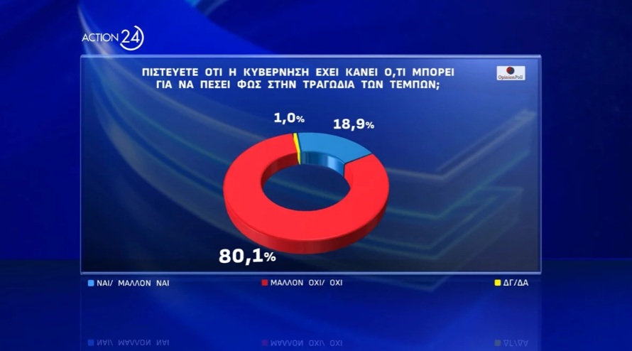 Το ζήτημα της τραγωδίας στα Τέμπη παραμένει ανοιχτή πληγή, καθώς το 80,1% των πολιτών εκτιμά ότι η κυβέρνηση δεν έχει κάνει ό,τι μπορεί για να αποδοθούν ευθύνες.