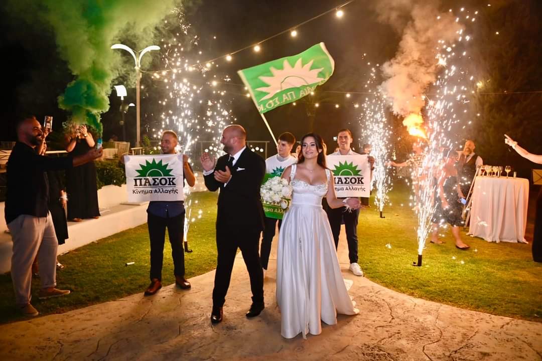 Αγρίνιο: Όπως δημοσιεύει το agrinionews.gr, ο Νίκος Ασβεστόπουλος και η Παναγιώτα Τριανταφυλλίδη ενώθηκαν με τα ιερά δεσμά του γάμου στον Ιερό Ναό Αγίου Κωνσταντίνου, αλλά αυτό που πραγματικά έκλεψε την παράσταση ήταν η είσοδός τους στο γλέντι. Με καπνογόνα, βεγγαλικά και σημαίες του ΠΑΣΟΚ να κυματίζουν, το ζευγάρι έκανε την είσοδό του υπό τους ήχους του εμβληματικού τραγουδιού «Καλημέρα ήλιε», δημιουργώντας μια ατμόσφαιρα που θα μείνει αξέχαστη σε όλους τους παρευρισκόμενους.