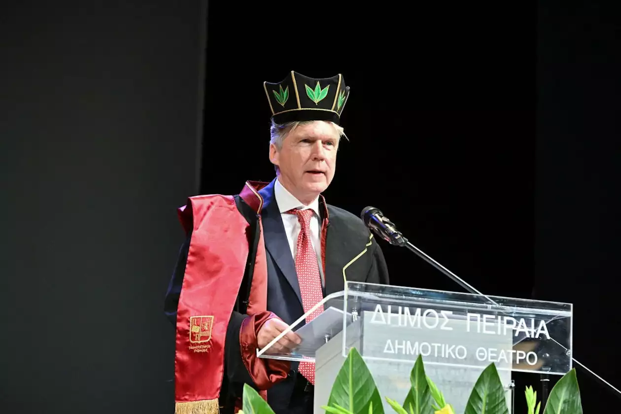 Η τελετή ξεκίνησε με την προσφώνηση από τον Πρύτανη του Πανεπιστημίου Πειραιώς, Καθηγητή Μιχαήλ Σφακιανάκη, και στη συνέχεια ακολούθησε η παρουσίαση της διαδρομής ζωής και του σημαντικού έργου – γνωστού ως Laudatio – του τιμωμένου από τον Πρόεδρο του Τμήματος Οργάνωσης και Διοίκησης Επιχειρήσεων, Καθηγητή Δημήτριο Γεωργακέλλο.