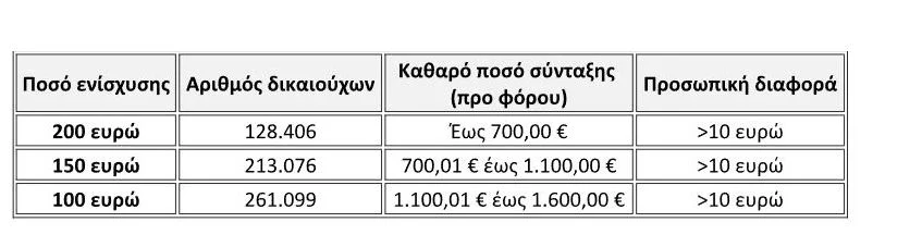 Η οικονομική ενίσχυση αφορά συνολικά 602.581 συνταξιούχους και αποσκοπεί στη στήριξη αυτών που διατηρούν προσωπική διαφορά στις συντάξεις τους.