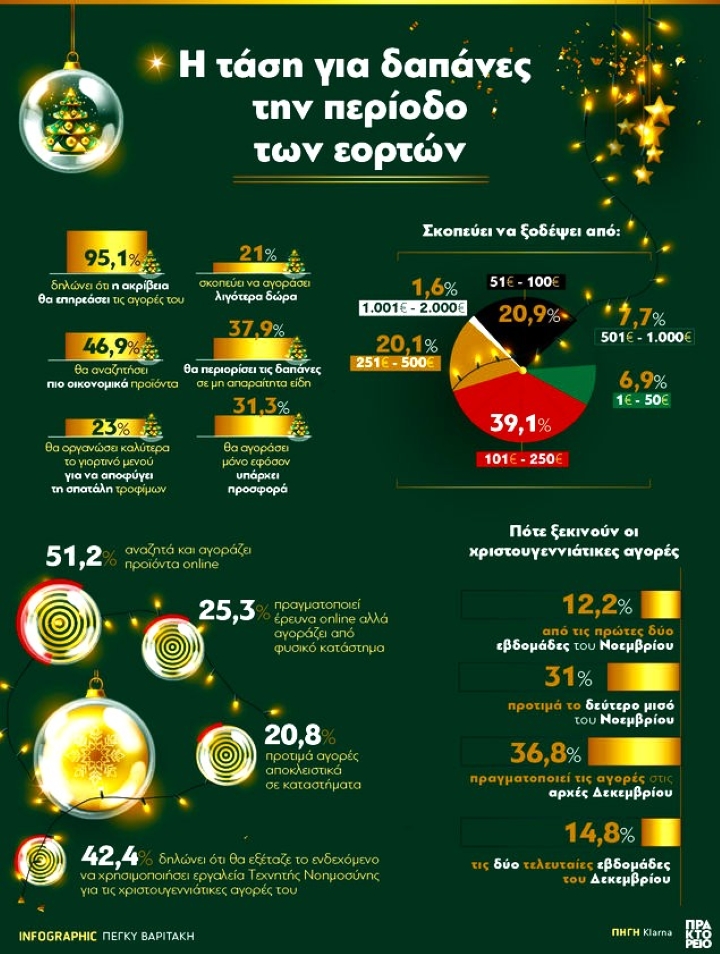 Περίπου 21% σκοπεύει να αγοράσει λιγότερα δώρα, ενώ το 37,9% δηλώνει ότι θα περιορίσει τις δαπάνες στα απολύτως απαραίτητα. Παράλληλα, σχεδόν ένας στους δύο (46,9%) θα στραφεί σε πιο οικονομικά προϊόντα.