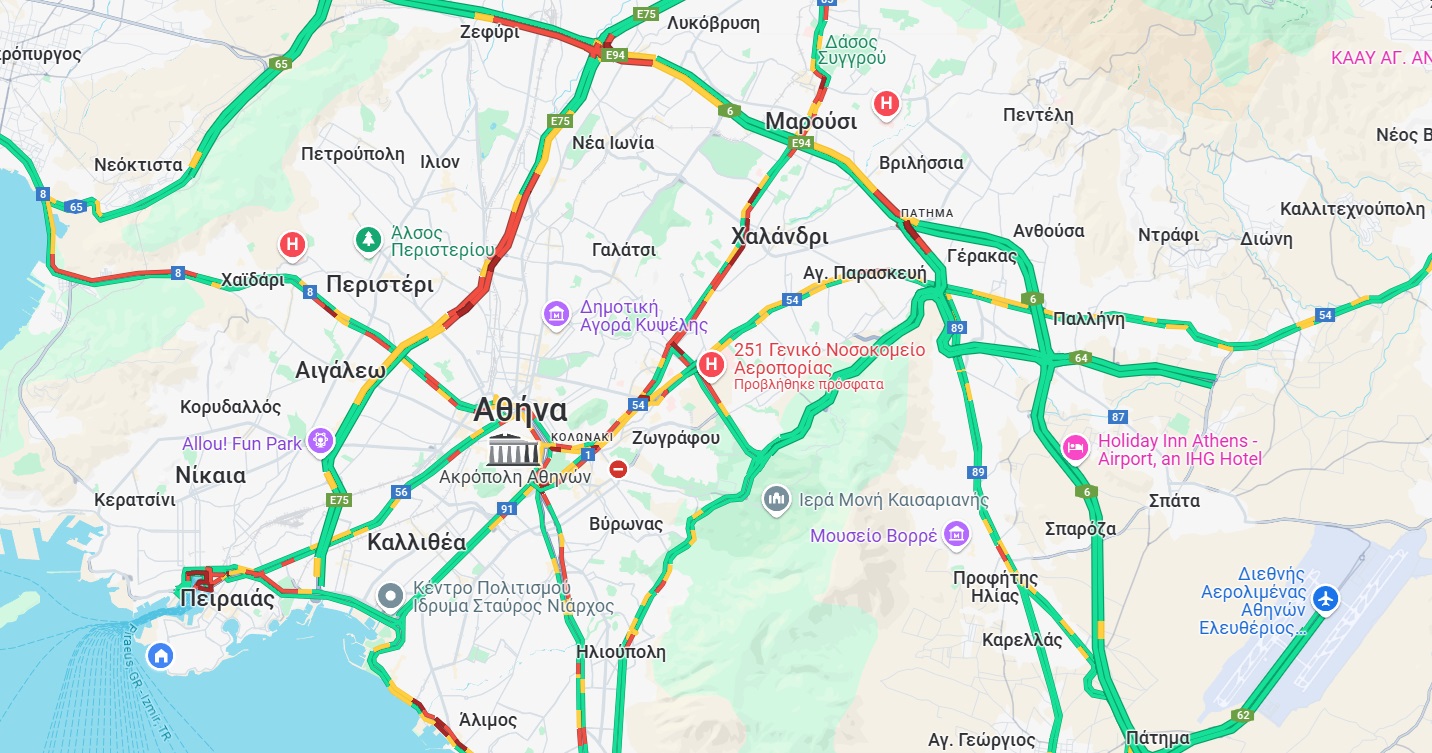 Κάντε κλικ πάνω στον χάρτη να δείτε LIVE την κίνηση σε όλη την Αττική
