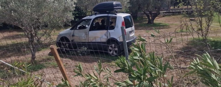 Το αυτοκίνητο συνέχισε την ανεξέλικτη πορεία του, πέφτοντας πάνω σε φράχτη σπιτιού και μπήκε μέσα στο χωράφι.