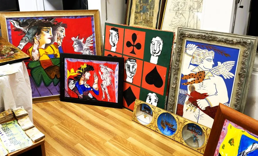 Τα ευρήματα των αρχών προκαλούν αίσθηση. Σύμφωνα με τα μέχρι στιγμής στοιχεία, στη γκαλερί εντοπίστηκαν περισσότερα από 300 έργα τέχνης, εκ των οποίων μόλις επτά εκτιμάται ότι είναι αυθεντικά.