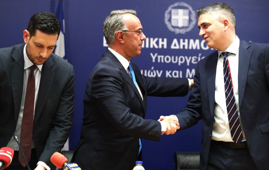Πραγματοποιήθηκε στο υπουργείο Εθνικής Οικονομίας και Οικονομικών η παράδοση – παραλαβή χαρτοφυλακίων του Yπουργείου από τον Κωστή Χατζηδάκη στον Κυριάκο Πιερρακάκη και από το Χρίστο Δήμα στο Γιώργο Κώτσηρα.