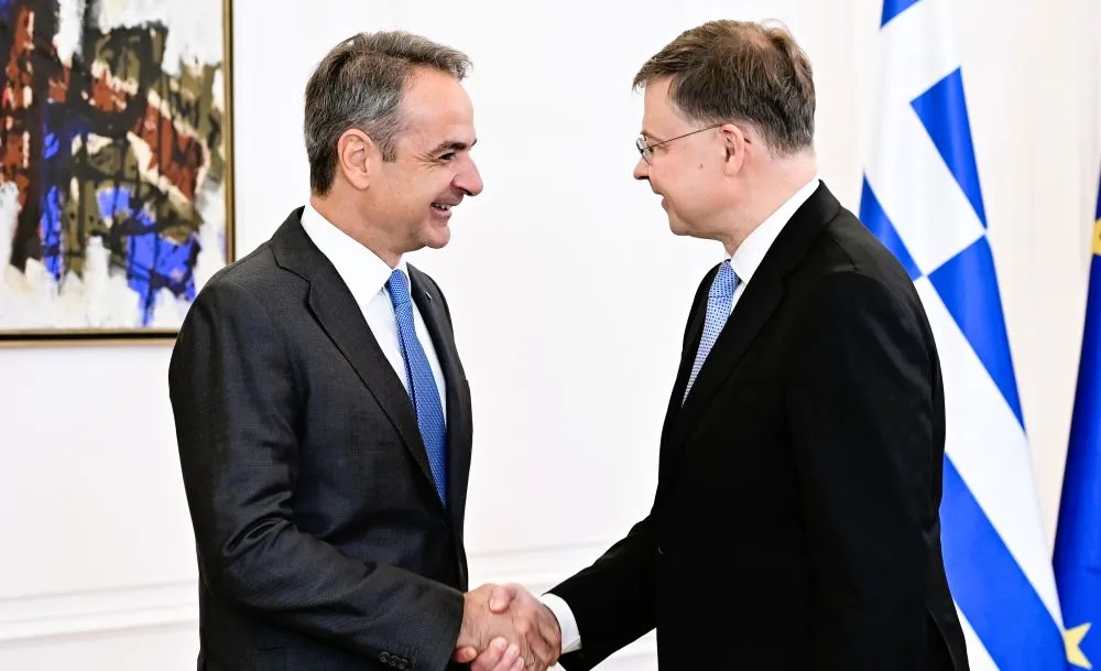 Σε μια συγκυρία διεθνούς αβεβαιότητας και γεωπολιτικών πιέσεων, η ελληνική οικονομία επιχειρεί να κατοχυρώσει το αφήγημα της σταθερής ανάκαμψης, με τη συνάντηση στο Μέγαρο Μαξίμου να λειτουργεί ως πολιτικό και οικονομικό σήμα προς τις αγορές. Ο Κυριάκος Μητσοτάκης υποδέχθηκε τον Ευρωπαίο Επίτροπο Οικονομίας Βάλντις Ντομπρόβσκις, σε μια χρονική στιγμή που η Αθήνα επιχειρεί να κεφαλαιοποιήσει τις επιδόσεις της και να διατηρήσει την αξιοπιστία της εντός της Ευρωπαϊκής Ένωσης.