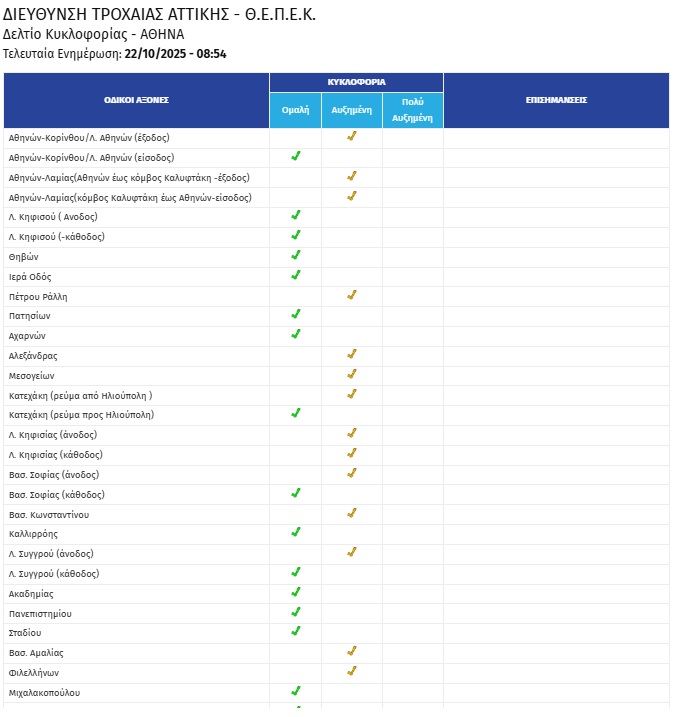 Η κυκλοφορία αναμένεται να αποκατασταθεί σταδιακά μέσα στις επόμενες ώρες, ωστόσο η κίνηση παραμένει ιδιαίτερα αυξημένη.