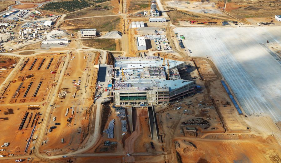 Ο πύργος ελέγχου έχει ολοκληρωθεί κατά 60%, ενώ το Terminal επτά επιπέδων συνολικής επιφάνειας 93.000 τ.μ. είναι επίσης στο 60%. Τα καταστρώματα του διαδρόμου προσγείωσης-απογείωσης μήκους 3.200 μέτρων κατηγορίας κατά ICAO 4E και του τροχόδρομου εμφανίζουν ποσοστό προόδου 96% και σε μια εβδομάδα θα είναι ολοκληρωμένα. Επίσης, σε εξέλιξη βρίσκεται η κατασκευή των οικοδομικών και ηλεκτρομηχανολογικών εργασιών στην πλειονότητα των κτηρίων.