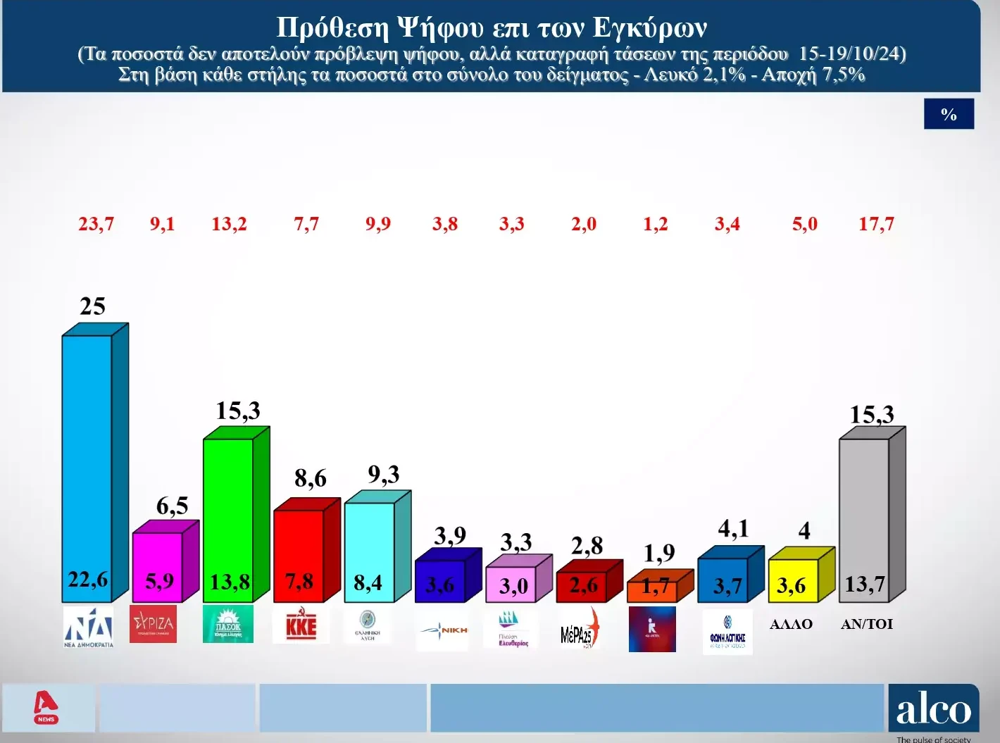 Η δημοσκόπηση, ολοκληρώθηκε πριν από δύο ημέρες, δηλαδή στις 19/10/24.