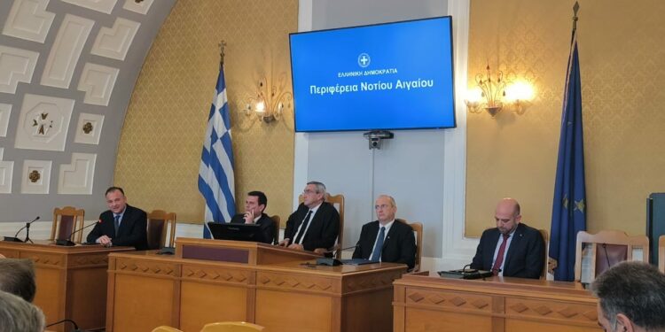 Σε σύσκεψη στην Περιφέρεια Νοτίου Αιγαίου με τους Υπουργούς Μετανάστευσης και Ασύλου κ. Δημήτρη Καιρίδη, Προστασίας του Πολίτη κ. Γιάννη Οικονόμου και τον Περιφερειάρχη Νοτίου Αιγαίου, κ. Γιώργο Χατζημάρκο, συμμετείχε ο Υφυπουργός Ναυτιλίας και Νησιωτικής Πολιτικής κ. Ιωάννης Παππάς.