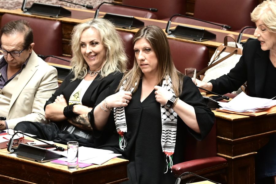 Με παλαιστινιακή μαντίλα στους ώμους και «καταφανή» οργή για τη Γάζα, η Ζωή Κωνσταντοπούλου έδωσε μία ακόμη μάχη εντυπώσεων στη Βουλή