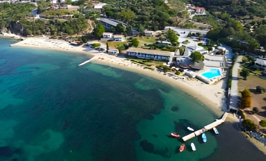 Το ακίνητο εκτείνεται σε οικόπεδο 27.817 τ.μ., με πρόσοψη 330 μέτρων σε ιδιωτική παραλία, και περιλαμβάνει: