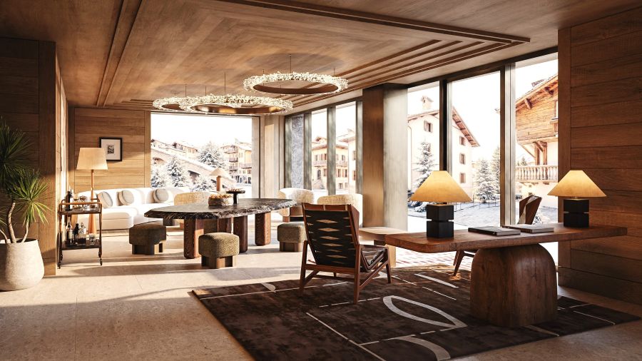 Το ακίνητο, που δεσπόζει στον κεντρικό πεζόδρομο Corso Italia της Cortina, μεταμορφώνεται αρχιτεκτονικά από το ιταλικό γραφείο pconp, ενώ το εσωτερικό concept φέρει την υπογραφή του διεθνώς αναγνωρισμένου Tihany Design Studio.