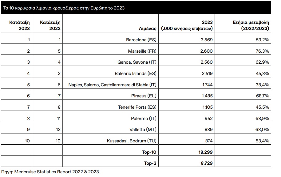 - Στην κρουαζιέρα, σημείωσε άνοδο 107,7% σε σύγκριση με το 2019, με 26.123 επιβάτες