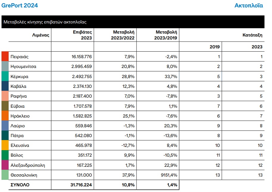 - Στην ακτοπλοΐα, εξυπηρετήθηκαν 542.080 επιβάτες, παραμένοντας κομβικό σημείο για τη Δυτική Ελλάδα