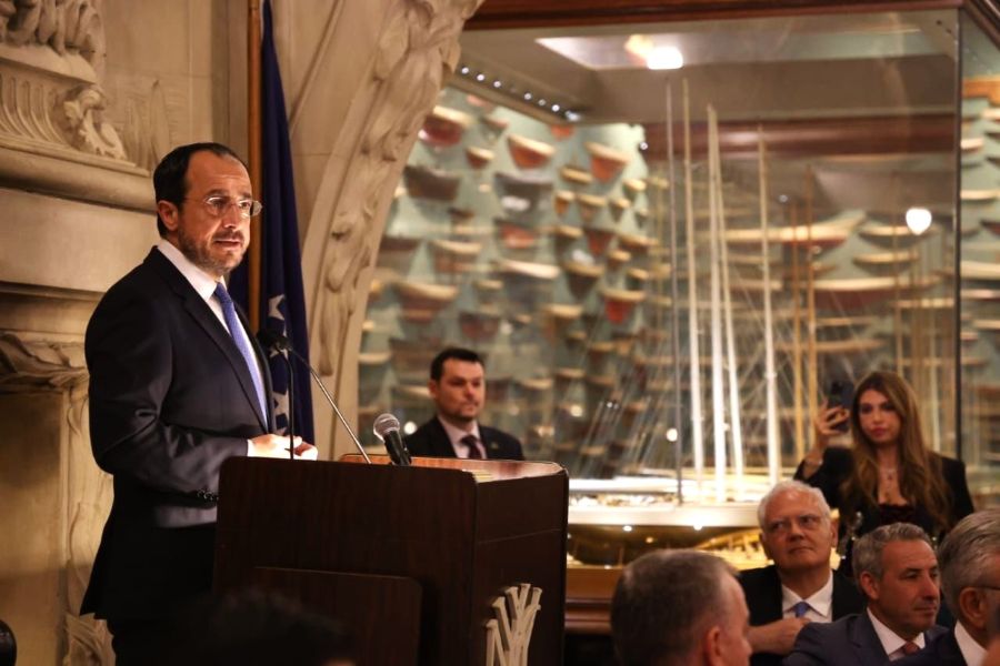 Στο δείπνο των συμμετεχόντων που ακολούθησε, στο Yacht Club της Νέας Υόρκης, ο Πρόεδρος της Κυπριακής Δημοκρατίας Νίκος Χριστοδουλίδης τόνισε τη διττή σημασία της Κύπρου και της ναυτιλίας, υπογραμμίζοντας: