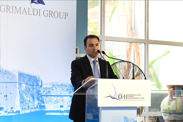 Στην ομιλία του, ο πρόεδρος και διευθύνων σύμβουλος της Grimaldi Euromed S.p.A. και πρόεδρος του διοικητικού συμβουλίου της ΟΛΗ Α.Ε., Εμανουέλε Γκριμάλντι (Emanuele Grimaldi), αναφέρθηκε στο μακροπρόθεσμο επενδυτικό όραμα που ενέπνευσε την απόκτηση πλειοψηφικού ποσοστού στον Οργανισμό Λιμένος Ηρακλείου: «Εχουμε ένα φιλόδοξο επενδυτικό πρόγραμμα με στόχο την πλήρη αξιοποίηση της στρατηγικής θέσης του Ηρακλείου στην Ανατολική Μεσόγειο. Αυτό το λιμάνι έχει μεγάλες δυνατότητες για νέες εμπορικές οδούς τόσο για επιβατικές όσο και για εμπορευματικές μεταφορές, συμπεριλαμβανομένης της κρουαζιέρας και της μεταφοράς οχημάτων »Το γνωρίζουμε πολύ καλά αυτό «δεδομένου ότι εδώ και πολλά έτη αποτελούμε τον κύριο πελάτη του λιμένα μέσω της εταιρείας του Ομίλου Grimaldi, Minoan Lines με έδρα στο Ηράκλειο. Με τις επενδύσεις που σκοπεύουμε να υλοποιήσουμε σε ανανεώσιμες πηγές ενέργειας, θα υποστηρίξουμε τη βιώσιμη ανάπτυξη του λιμανιού και τον μετασχηματισμό του σε ένα πραγματικά πράσινο και πρότυπο λιμάνι για την περιοχή της Μεσογείου. Απώτερος στόχος μας είναι να αναπτύξουμε βελτιωμένες υπηρεσίες στο λιμάνι, με αυξημένη εμπορική δραστηριότητα, μεγαλύτερη τουριστική κίνηση, περισσότερες επιχειρηματικές ευκαιρίες, νέες θέσεις εργασίας και μεγαλύτερη ευημερία για την πόλη του Ηρακλείου, το νησί της Κρήτης και την Ελλάδα στο σύνολό της».
