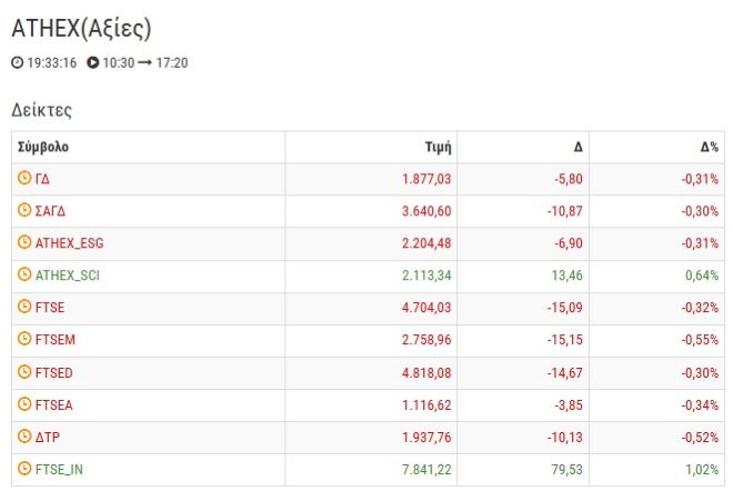 Η συνεδρίαση ξεκίνησε με ανοδική διάθεση, αγγίζοντας ενδοσυνεδριακά τις 1.894 μονάδες, ωστόσο σταδιακά εκδηλώθηκαν κινήσεις κατοχύρωσης κερδών, οδηγώντας τον δείκτη σε ήπια διόρθωση. Ο Γενικός Δείκτης υποχώρησε κατά 0,31%, κλείνοντας στις 1.877,03 μονάδες, παραμένοντας όμως στα υψηλότερα επίπεδα των τελευταίων 15 ετών.