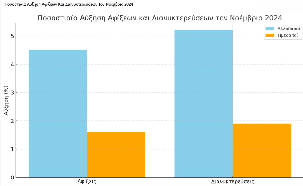 Αύξηση αφίξεων και διανυκτερεύσεων στα ελληνικά καταλύματα τον Νοέμβριο 2024