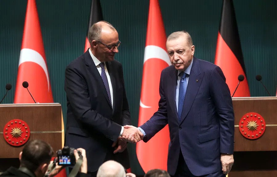 Η συνάντηση του Φρίντριχ Μερτς με τον Ταγίπ Ερντογάν αποτυπώνει τη λεπτή γραμμή που καλείται να ακολουθήσει η Γερμανία: από τη μία, την ανάγκη στρατηγικής συνεργασίας με την Τουρκία και, από την άλλη, τη διατήρηση των ευρωπαϊκών αξιών και της υπεράσπισης των ανθρωπίνων δικαιωμάτων. Τα γερμανικά ΜΜΕ συνοψίζουν τη συνάντηση ως ένα μάθημα ρεαλισμού για τον νέο καγκελάριο και μια υπενθύμιση ότι ο δρόμος προς μια «αρμονική σχέση» με την Άγκυρα παραμένει γεμάτος αντιφάσεις.