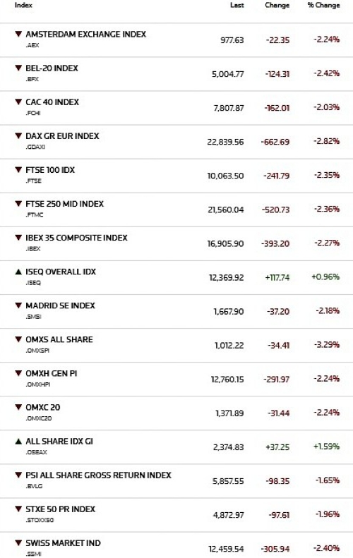 Ευρωπαϊκά χρηματιστήρια σε ελεύθερη πτώση: Sell-off άνω του 2% – Βουτιά δεικτών, ενεργειακό σοκ και γεωπολιτικός πανικός
