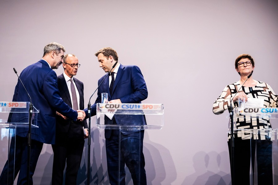 Η συμφωνία μεταξύ Χριστιανικής Ένωσης και Σοσιαλδημοκρατών για τη συγκρότηση νέας κυβέρνησης σηματοδοτεί μια προσπάθεια επανεκκίνησης σε μια Γερμανία που αναζητά σταθερότητα μέσα σε διεθνείς και εσωτερικές κρίσεις. Όπως σχολιάζει ο γερμανικός Τύπος, πρόκειται για έναν «μεγάλο συνασπισμό» όχι τόσο αλλαγής, αλλά διατήρησης της συνοχής – με τα πρώτα βήματα να κρίνονται κρίσιμα για την αποτροπή περαιτέρω πολιτικής αποσάθρωσης.
