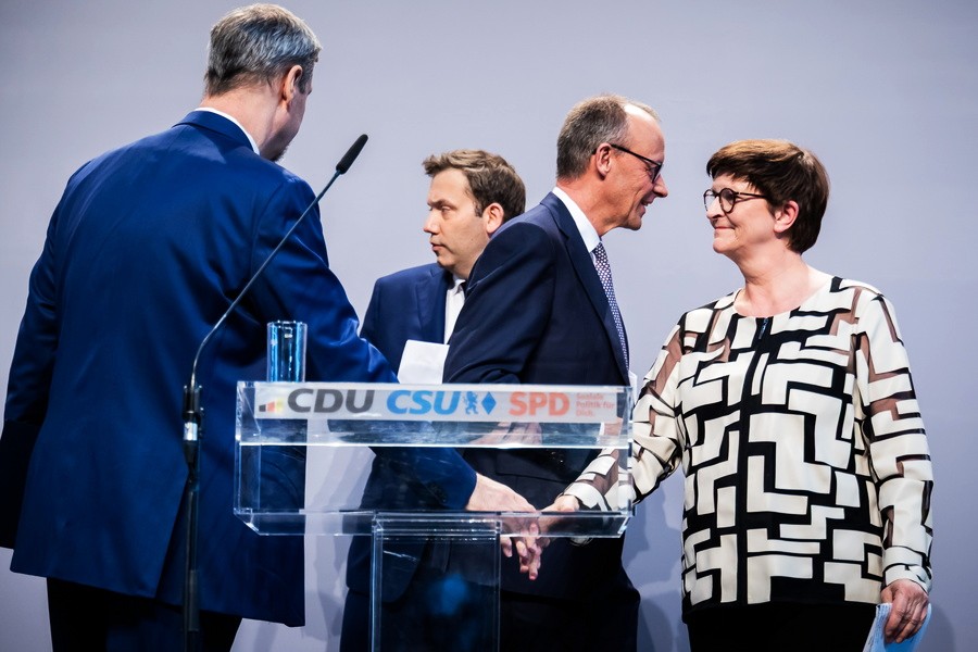 Μετά από μακρές και συντονισμένες διαπραγματεύσεις, η Ένωση και το SPD παρουσιάζουν ένα κυβερνητικό πρόγραμμα που φιλοδοξεί να επαναφέρει την αίσθηση αξιοπιστίας, χωρίς όμως μεγάλα λόγια. Όπως σχολιάζει η Süddeutsche Zeitung, το νέο σχήμα ξεκινά «με καλύτερες προϋποθέσεις από τον προηγούμενο συνασπισμό, αλλά και σε πιο δύσκολες συνθήκες».
