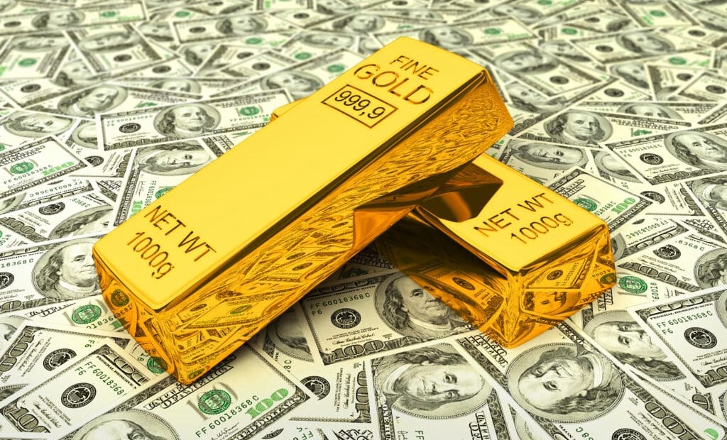Gold bars on dollars
