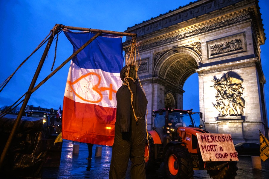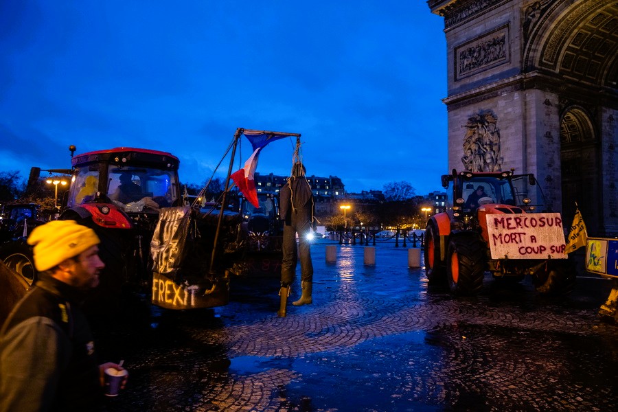 Σε σκηνικό έντονης κοινωνικής και πολιτικής έντασης μετατράπηκε το Παρίσι, καθώς Γάλλοι αγρότες κατέβασαν τα τρακτέρ τους στους δρόμους της πρωτεύουσας, αποκλείοντας κομβικές αρτηρίες και εμβληματικά σημεία, όπως την Αψίδα του Θριάμβου και τη λεωφόρο των Ηλυσίων Πεδίων. Στο επίκεντρο των κινητοποιήσεων βρίσκεται η εμπορική συμφωνία ελεύθερου εμπορίου μεταξύ της Ευρωπαϊκή Ένωση και των χωρών της Mercosur, την οποία οι αγρότες θεωρούν υπαρξιακή απειλή για τον ευρωπαϊκό αγροτικό τομέα.