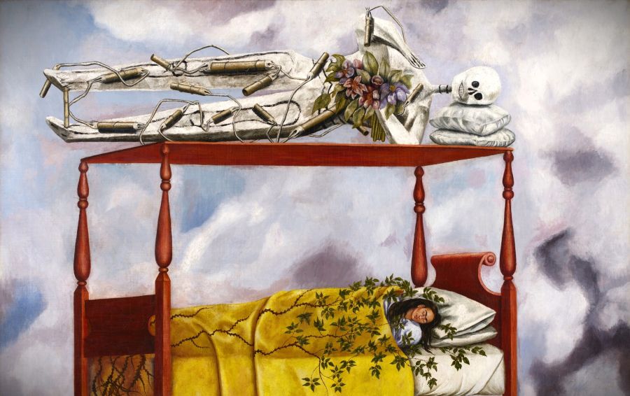 Στον πίνακα, η Κάλο απεικονίζεται να κοιμάται σε ξύλινο αποικιακό κρεβάτι που μοιάζει να αιωρείται στον ουρανό. Πάνω από το κρεβάτι της, ένας σκελετός τυλιγμένος με δυναμίτες κρατά μια ανθοδέσμη, παραπέμποντας σε έναν μακάβριο αλλά βαθιά οικείο συμβολισμό. Η Άννα Ντι Στάζι, ειδική λατινοαμερικανικής τέχνης στον Sotheby’s, σημείωσε ότι η ζωγράφος συνδύαζε στο έργο φολκλόρ μοτίβα της μεξικανικής παράδοσης με στοιχεία ευρωπαϊκού σουρεαλισμού, δημιουργώντας μια εικόνα απολύτως προσωπική και ταυτόχρονα παγκόσμια αναγνωρίσιμη.