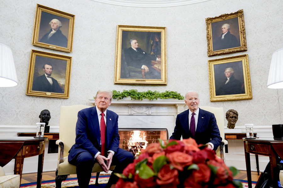 «Καλώς ήρθατε, καλώς ήρθατε πίσω», είπε ο Μπάιντεν στον Τραμπ κατά την έναρξη της συνάντησής τους. Όπως είχε υποσχεθεί την προηγούμενη εβδομάδα, ο Μπάιντεν είπε στον Τραμπ ότι αναμένει μια ειρηνική μεταβίβαση της εξουσίας, με τον Τραμπ να διαβεβαιώνει ότι θα είναι «η πιο ομαλή (που υπήρξε) ποτέ».