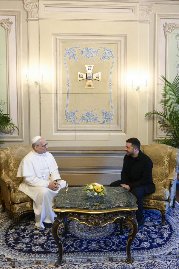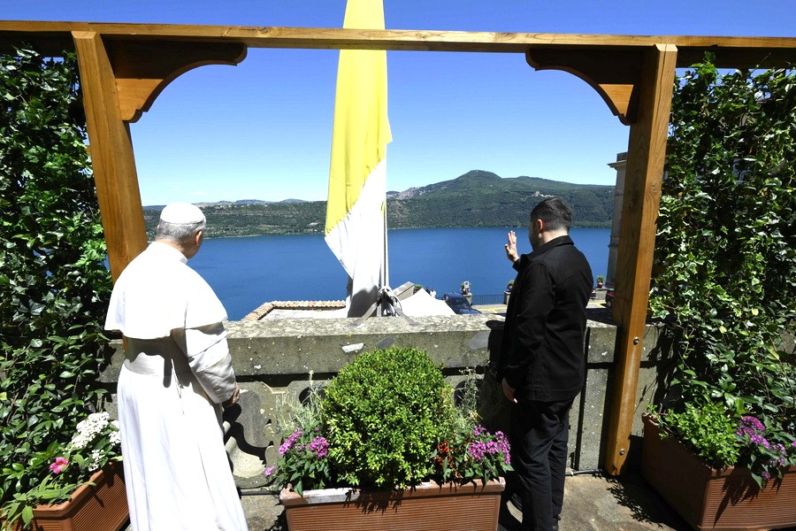 Οι δύο ηγέτες συναντήθηκαν στον γραφικό οικισμό Κάστελ Γκαντόλφο, κοντά στη Ρώμη, όπου ο Πάπας Λέων περνάει την ετήσια θερινή ανάπαυσή του διάρκειας δύο εβδομάδων. Σύμφωνα με την επίσημη ανακοίνωση του Βατικανού, συζητήθηκε η «επείγουσα ανάγκη για μια δίκαιη και διαρκή ειρήνη» στην Ουκρανία, με τον Ποντίφικα να εκφράζει την ανησυχία του για την ανθρωπιστική κρίση που συνεχίζεται επί δύο και πλέον έτη από την εισβολή της Ρωσίας.