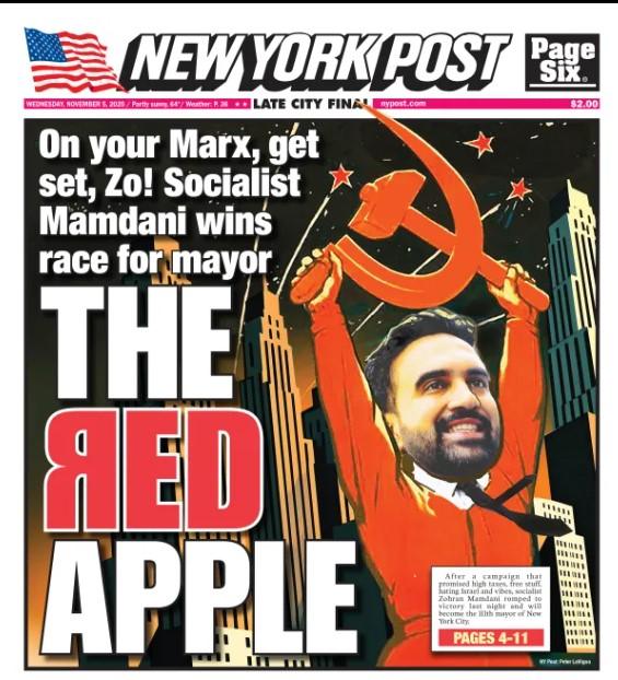 Η New York Post έβγαλε πρωτοσέλιδο που θύμιζε περισσότερο πολιτικό σεισμό παρά εκλογικό αποτέλεσμα.